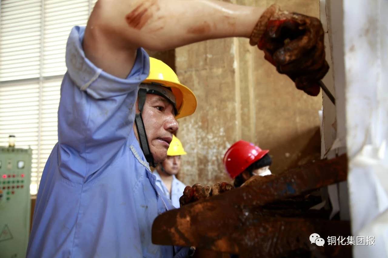 7月2日,在新橋礦業(yè)公司污水處理站壓濾平臺,壓濾工正在固定更換的板框式壓濾機濾布。汛期,每天都要更換130~150張濾布。