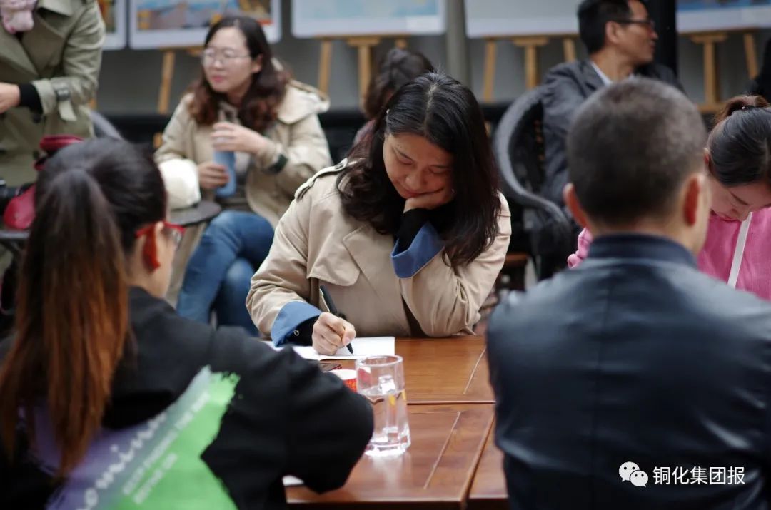 “好香啊,真是神仙處所!”“腦洞夠大呀,在這兒培訓(xùn)也是享受!”一進(jìn)門,通訊員們便被書院典雅秋色和濃郁桂香所吸引,就連《銅陵日報(bào)》與《銅化集團(tuán)》報(bào)的4位老師也忍不住贊嘆:“花香伴書香,確是看書、學(xué)習(xí)的佳境!”幾張小桌拼湊在院里的桂花樹下,小方凳圍坐一圈,培訓(xùn)班正式開課。沒有電子屏,也沒有刻意準(zhǔn)備的課件,一縷花香,一杯清茶,拋開拘謹(jǐn),“師生”促膝圍坐,開啟了“嘮嗑”式培訓(xùn)。通訊員們把平時(shí)找新聞、寫新聞過程中遇到的困惑、難事拿出來發(fā)問求解,4位編輯老師也結(jié)合多年采、寫、編經(jīng)驗(yàn)和現(xiàn)實(shí)所遇事例盡心為大家答疑解惑,通訊員們之間還結(jié)合自己見報(bào)之作分享了各自心得。
