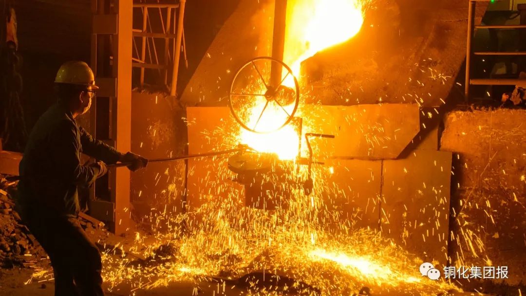 7月27日凌晨1點(diǎn),新橋礦業(yè)公司營銷中心新中公司鑄造車間,當(dāng)日第一爐鐵水緩緩流出,工人們冒著現(xiàn)場40℃多度的高溫,將超過1000℃的鐵水倒入模具內(nèi),快速澆鑄成型。