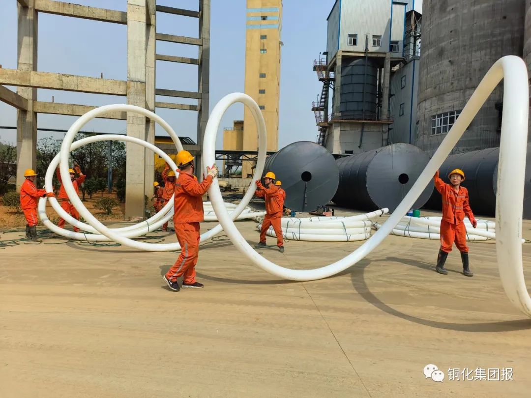 在施工現(xiàn)場,工人師傅們或肩扛,或手拉,全力完成管道鋪設(shè)任務(wù)。充填管道盤起來時直徑較大,運輸起來很麻煩;管道壁較厚,捋直也是對技巧、體力和耐力的考驗。師傅們將洗潔精涂在內(nèi)接外壁上進行潤滑,一絲一絲將內(nèi)接塞入管道內(nèi)。卡箍、拉桿等每一道工序都需要細致檢查,才能確保接好的管道投用后無“跑、冒、滴、漏”現(xiàn)象。在大家的共同努力下,三百多米的充填管道很快鋪設(shè)完畢,為后續(xù)負36米平臺新建水泵房的邊坡支護及采坑生態(tài)修復創(chuàng)造了條件。